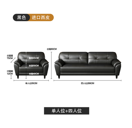 • 商品名称:冀华美 欧式真皮沙发头层牛皮现代简约客厅小户型组合办公室直排皮艺沙发单人位+4人位(95*70*85cm+200*75*80cm